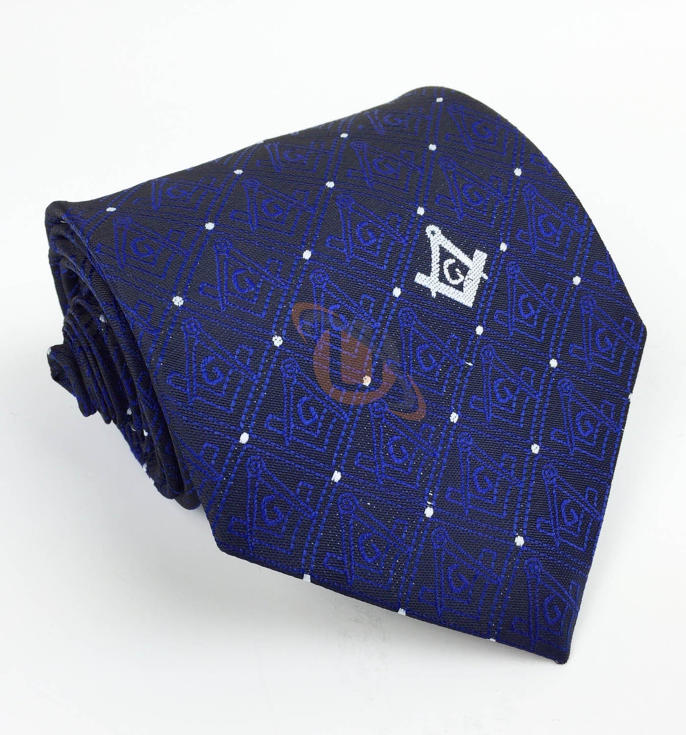 A Tie with the Freemasons square compass with G in a self print and one machine embroided in white logo