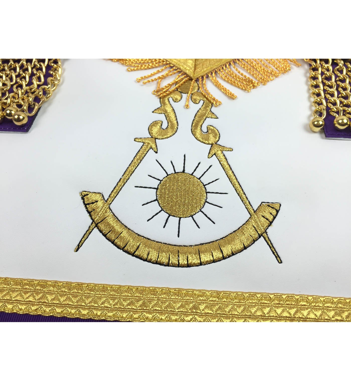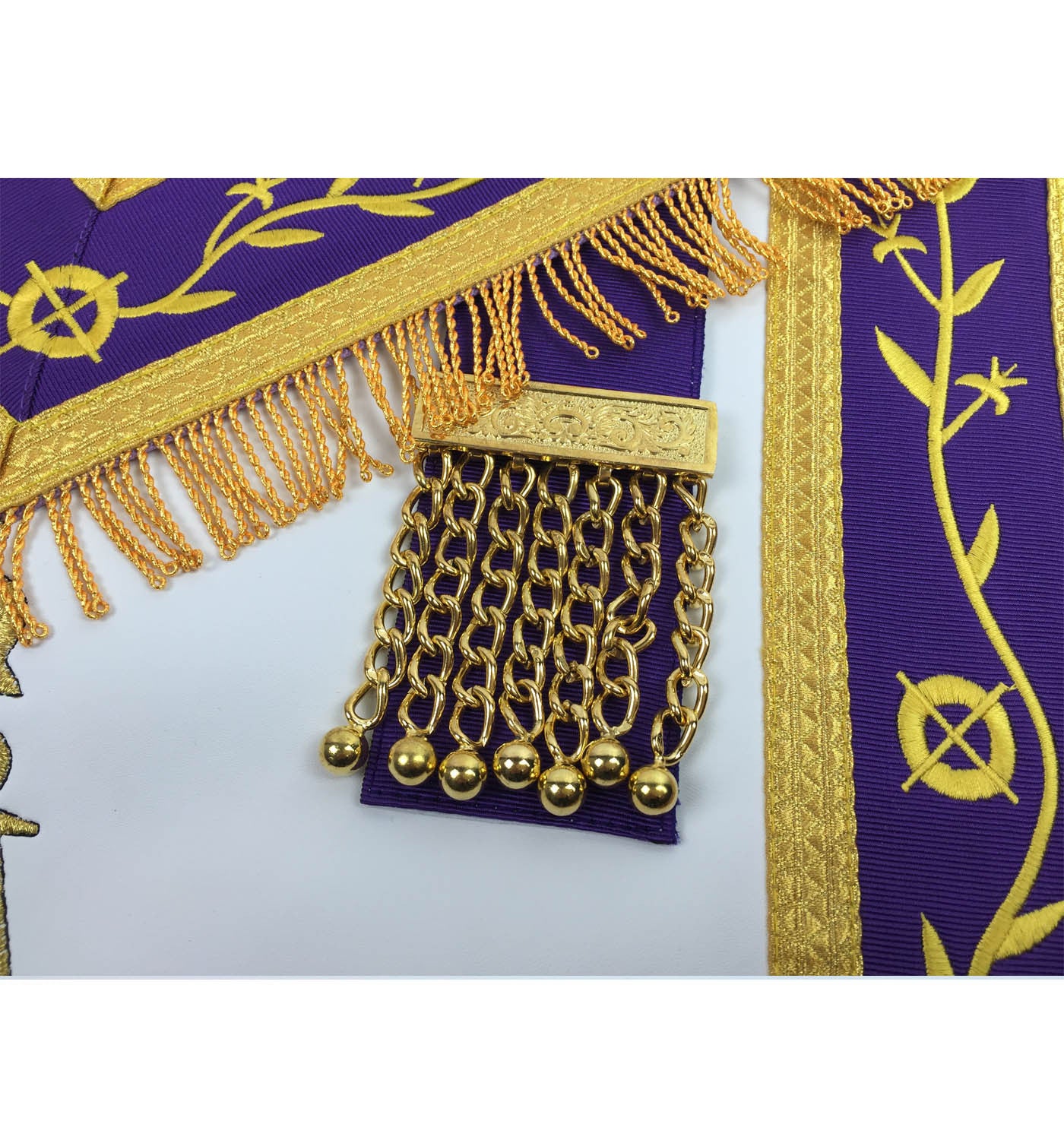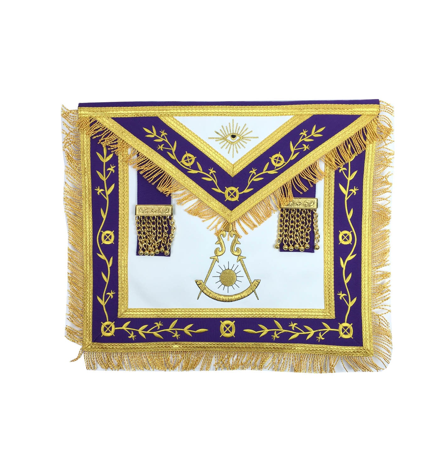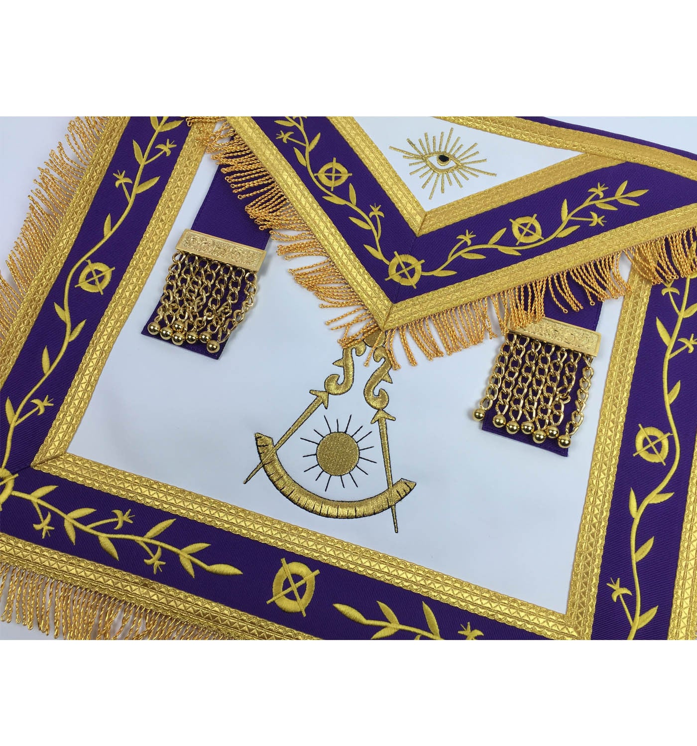 Masonic Blue Lodge Past Master Gold Machine Embroidery Freemason Purple Apron